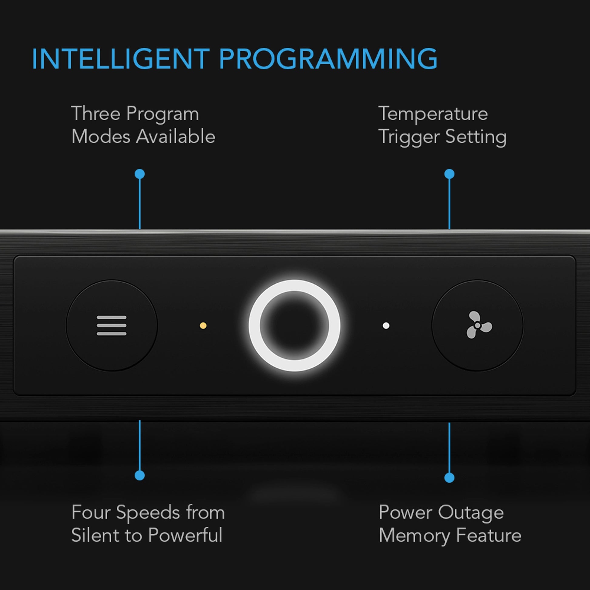 There are three programming settings available which includes two temperature trigger modes. The fans can also be set to run continuously or be turned off. Four fan speeds are available for each active mode and will determine the speed at which the fans run when they are triggered. This ensures optimal airflow and noise levels for your application.