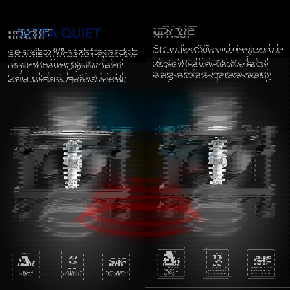 - Dual-ball bearings have a lifespan of 67,000 hours and allows the fans to be laid flat or stand upright.